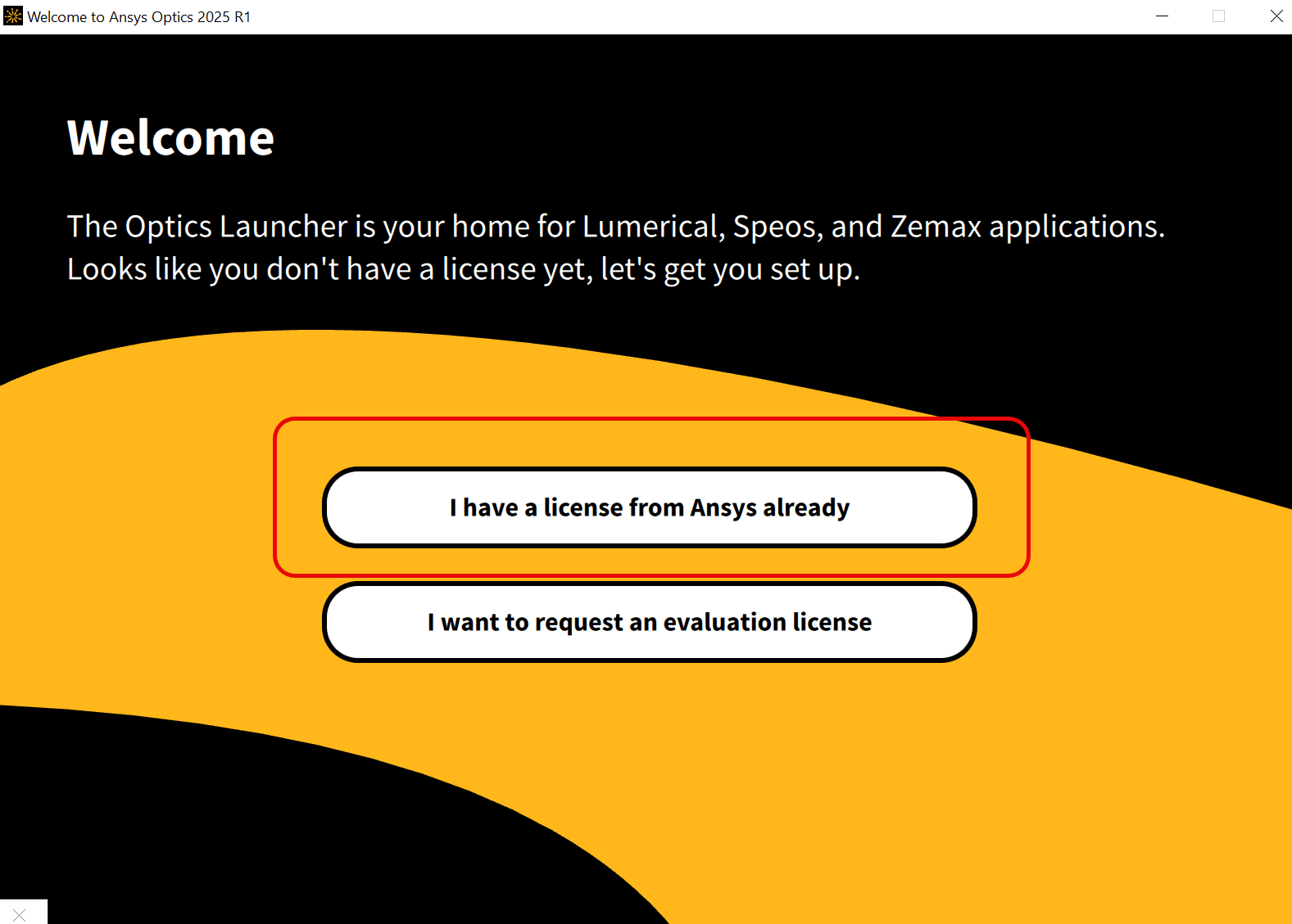 - After the installation has completed, launch “Ansys Optics Launcher” from the start menu